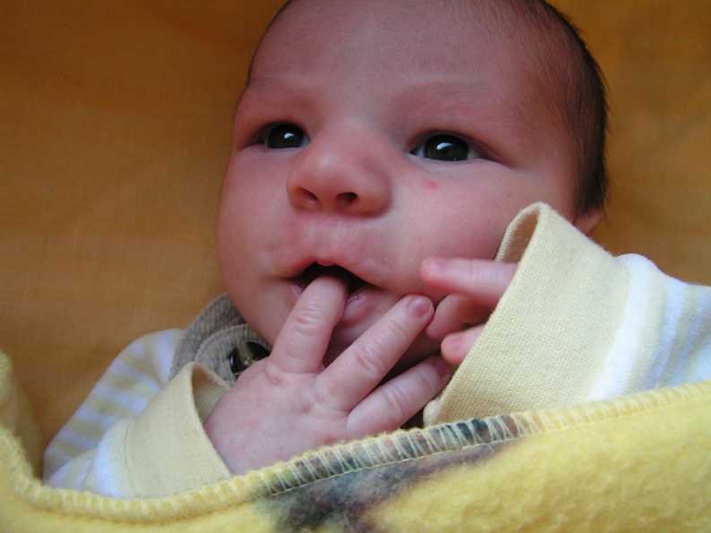 Erst einmal Lieblingsbeschäftigung Fingerlutschen. |