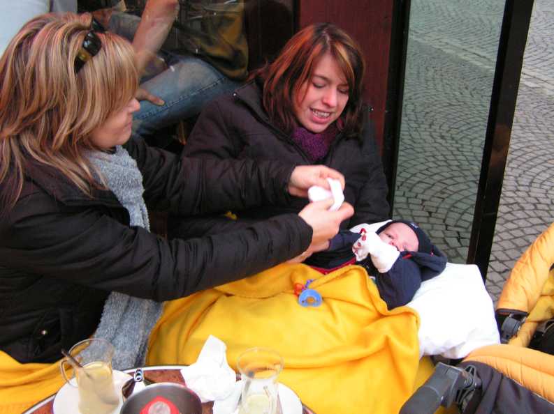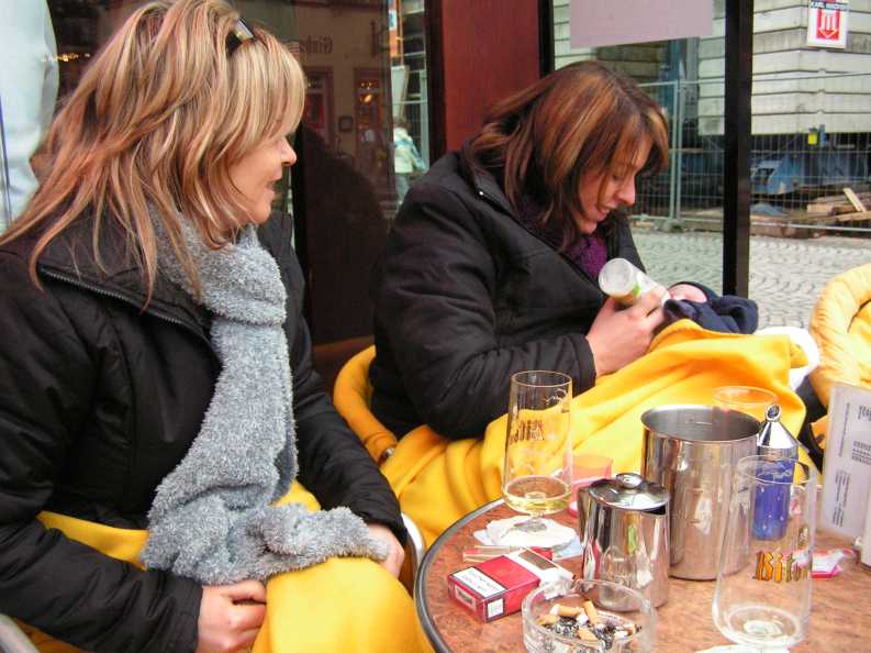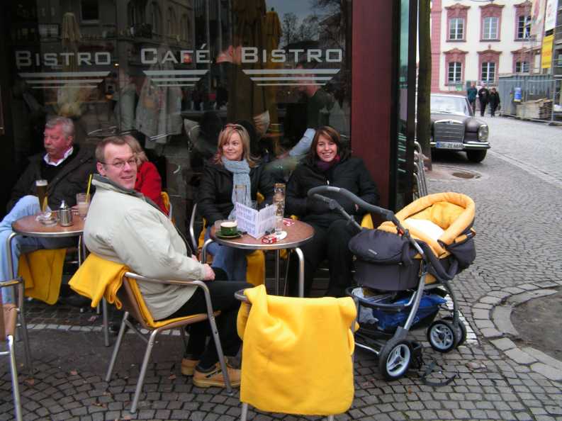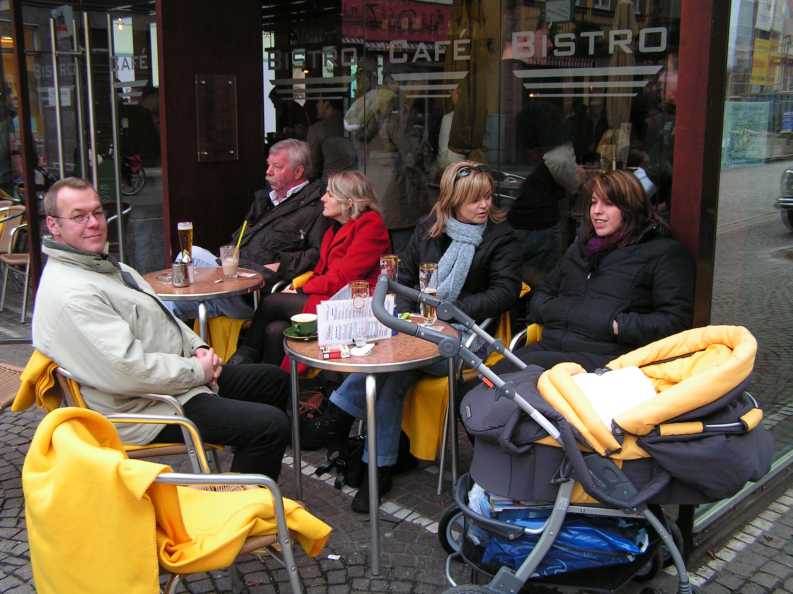 Kalt war es, aber die Cafés hatten "draussen" bestuhlt und Decken ausgelegt, so dass wir die ersten Sonnenstrahlen vor dem Café genießen konnten.